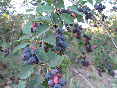 Picked a couple gallons of Saskatoons and have been eating lots of thimbleberries while out on our morning runs.